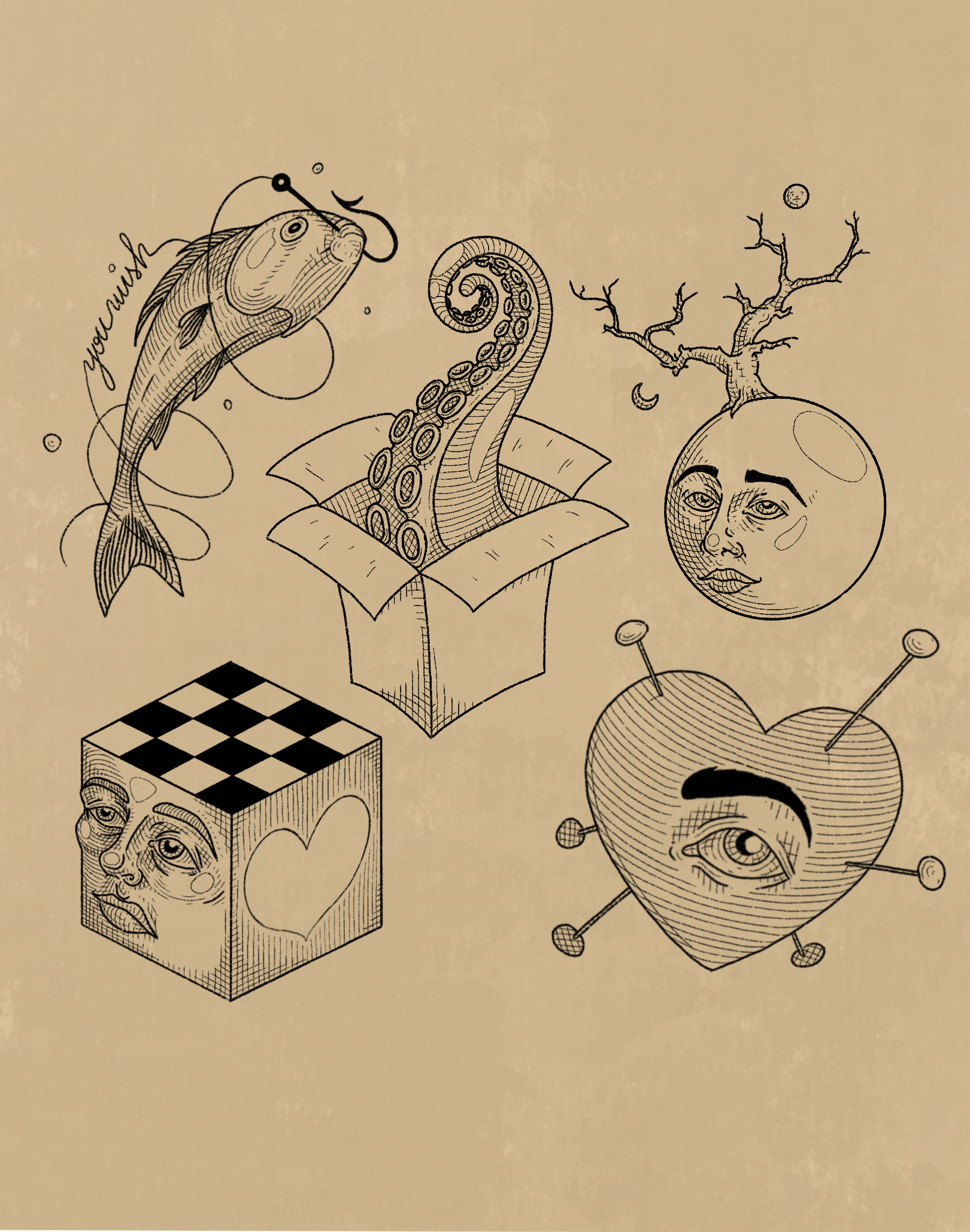 I create illustrations digitally, on paper or as body art. My goal is to bring your vision to life with a vintage touch that is unique and out-of-the-box.